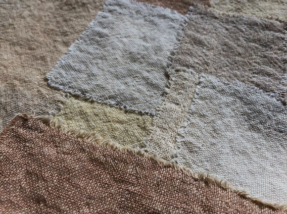 春から夏至を迎え、水を巡らせて移ろう光の季節にいただいた色を内に纏った布の欠片を縫い合わせてうまれた布。